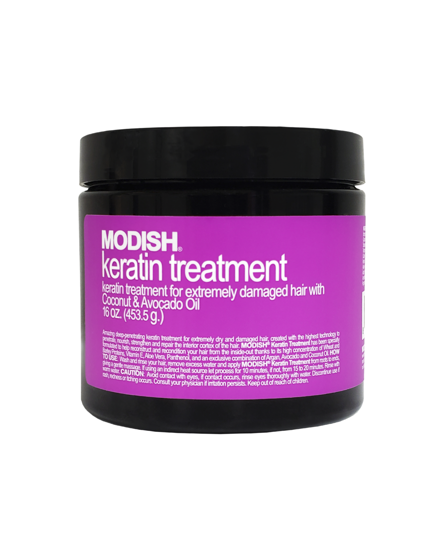 Amazing deep-penetrating keratin treatment for extremely dry and damaged hair, created with the highest technology to penetrate, nourish, strengthen and repair the interior cortex of the hair. MODISH® Keratin Treatment has been specially formulated to help reconstruct and recondition your hair from the inside-out thanks to its high concentration of Wheat and Barley Proteins, Vitamin E, Aloe Vera, Panthenol, and an exclusive combination of Argan, Avocado and Coconut Oil.